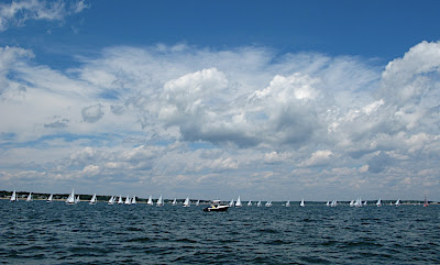 On board the press boat we had two fathers of young sailors in both the 29r and 420, who were neighboring circles and therefore spent the day between the two. I do have my circles a tad confused this moment, but the 29r shared (13 boats) with the Vanguard 15s (48 boats) and 505s (22 boats) doing "rabbit starts" which baffled most folks on the boat. I got an excellent video and working to get it posted ASAP.